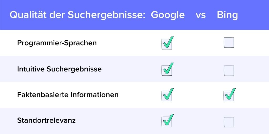 Suchergebnisse im Vergleich: Google vs Bing