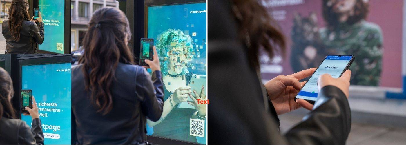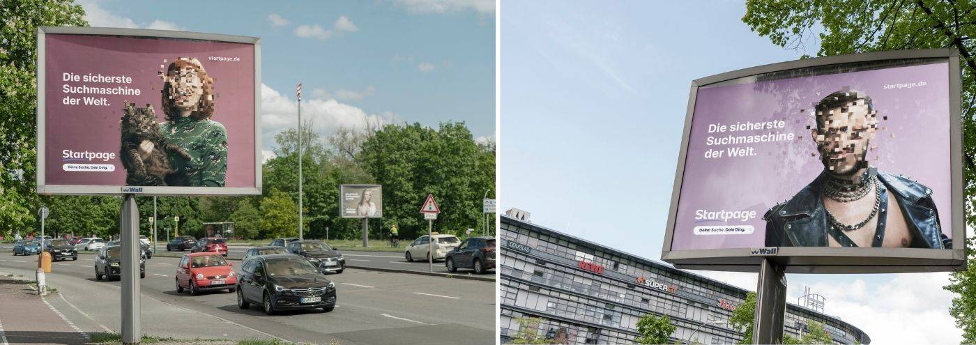 Teil der 360-Grad-Kampagne, die Startpage als die sicherste Suchmaschine der Welt in das Licht der Öffentlichkeit rückt, sind unter anderem reichweitenstarke großflächige 18/1- und Mega-Light-Plakate, kombiniert mit Litfaßsäulen, Kulturpostern sowie Digital Out-of-Home Screens.