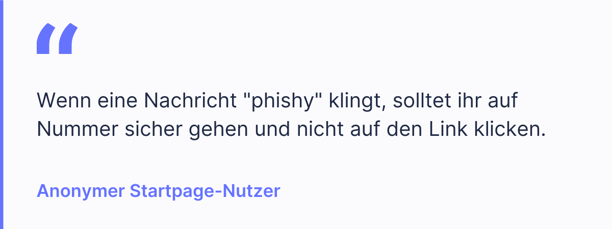 “Es ist ziemlich peinlich, das zuzugeben, aber ich schätze, das passiert fast jedem, oder? Ich bin schon ein paar Mal gehackt worden. Das letzte Mal war es auf Instagram. Ich erhielt eine private Nachricht von einem Freund mit den Worten: “Tut mir leid, dass ich so lange gebraucht habe, um dir das zu schicken” und einem Link, der mich zu einem Instagram-Login-Fenster führte. Natürlich habe ich meine E-Mail-Adresse und mein Passwort eingegeben. Dank Startpage weiß ich jetzt, dass das eine Phishing-Masche war. Es ist nichts wirklich Schlimmes passiert, außer dass von meinem Konto aus vielen meiner Freunde die gleiche Nachricht und der gleiche Link geschickt wurde. ?
