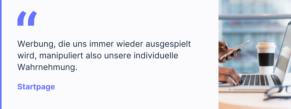Manchen mag das Sammeln von Online-Daten relativ harmlos erscheinen, tatsächlich ist es aber gefährlich für unsere mentale Gesundheit. Denn selbst Werbung, die wir bewusst ablehnen, bleibt unserem Unterbewusstsein im Gedächtnis hängen und erhöht die Wahrscheinlichkeit, dass wir das Produkt zu einem späteren Zeitpunkt kaufen. In der Psychologie nennt man dieses Phänomen den “Mere-Exposure-Effekt”: durch die wiederholte Wahrnehmung einer anfangs als neutral beurteilten Sache, wird ihr eine positivere Bewertung zugerechnet. Werbung, die uns immer wieder ausgespielt wird, manipuliert also unsere individuelle Wahrnehmung.