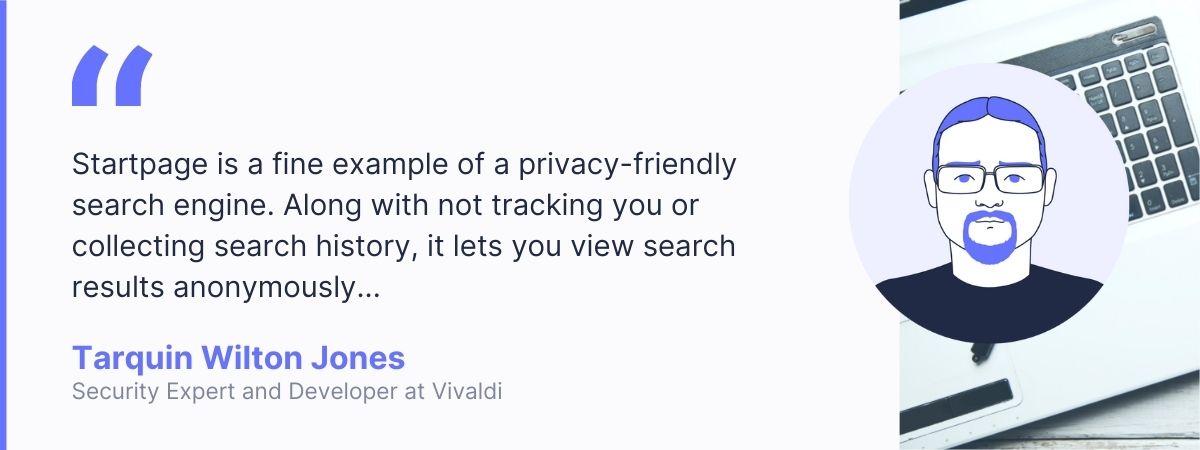 Startpage is a fine example of a privacy-friendly search engine. Along with not tracking you or collecting search history, it lets you view search results anonymously – not even the linked website will see that you have loaded it.