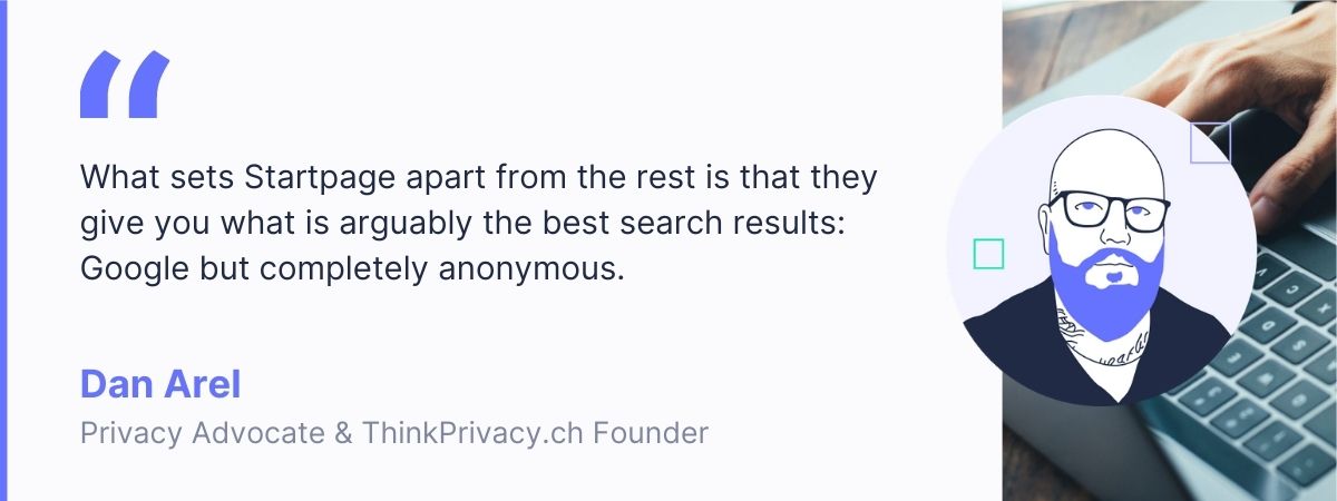 However, you don’t have to give up great results. What sets Startpage apart from the rest is that they give you what is arguably the best search results: Google but completely anonymous. Neither Startpage, Google, or even your ISP know who you are or what you’re searching for. Startpage even goes further than other privacy-respecting search engines in keeping you anonymous while you search and browse.