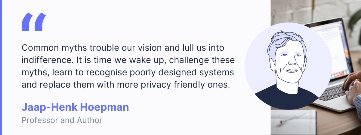 We live in an increasingly digital world. We shop online and share our lives digitally. Governments go digital to perform their tasks more efficiently, to increase our safety and security, and to combat fraud. Businesses similarly embrace digital technologies for new systems and services that are more efficient and more personalised. All these systems collect huge amounts of personal data and use that information to monitor or influence us, without many of us being fully aware of this. Common myths trouble our vision and lull us into indifference. It is time we wake up, challenge these myths, learn to recognise poorly designed systems and replace them with more privacy friendly ones.