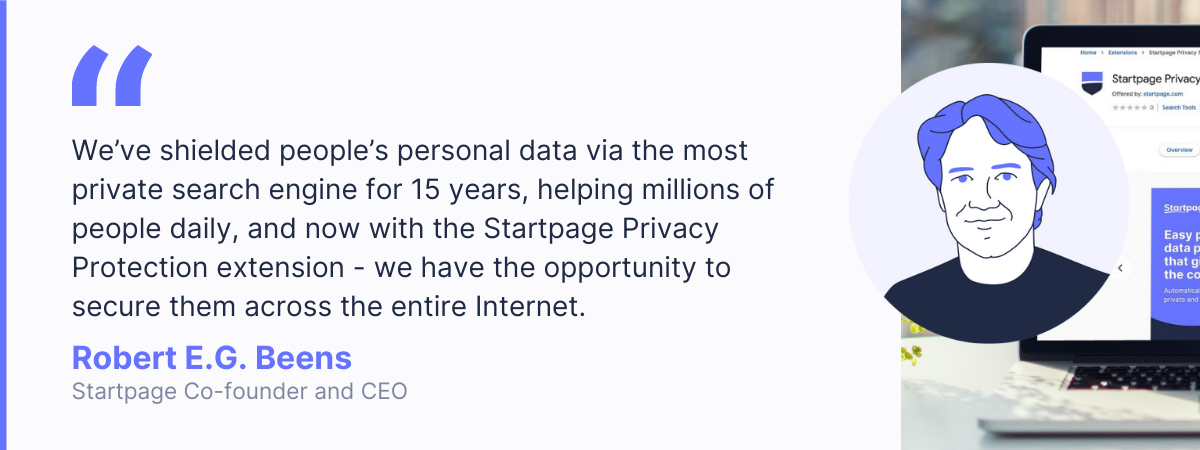 “As the CEO and Co-Founder of Startpage, it’s gratifying to see our privacy offering advance and broaden into new channels. We’ve shielded people’s personal data via the most private search engine for 15 years, helping millions of people daily, and now with the Startpage Privacy Protection extension – we have the opportunity to secure them across the entire Internet.” says Robert E.G. Beens. “I feel fortunate to offer such a comprehensive tool that helps protect people’s right to privacy and for the wonderful community that has grown around Startpage.”