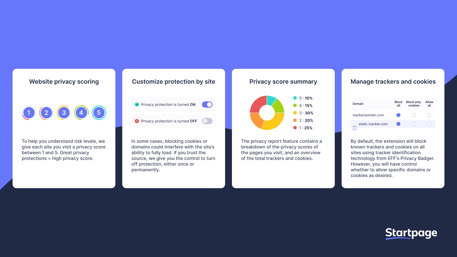 Startpage Privacy Protection is designed to be easy-to-use and gives anyone control over what personal data websites can track and store on them.
