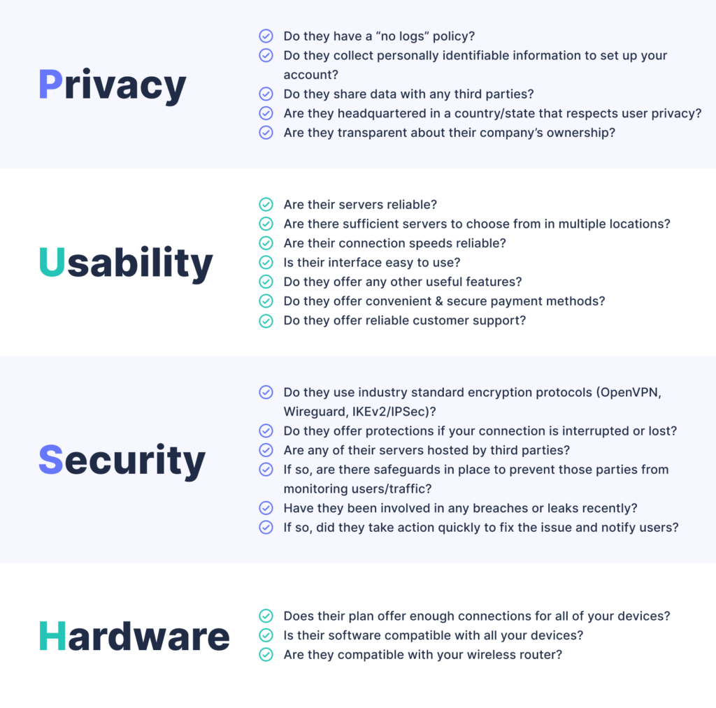 So then, should you decide to sign up for one, how do you go about choosing the right VPN for you. For starters, it’s very important to note that not all VPN services are created equal. The fact that there are “free” VPN’s out there should be your biggest clue of that. And we use the word “free” in quotes because, as our experiences with tech companies should teach us, if you’re not paying for the product, then you are the product. So then how do you go about choosing a VPN that gives you value for every dollar you’re spending? The key is to PUSH every dollar as far as you can: