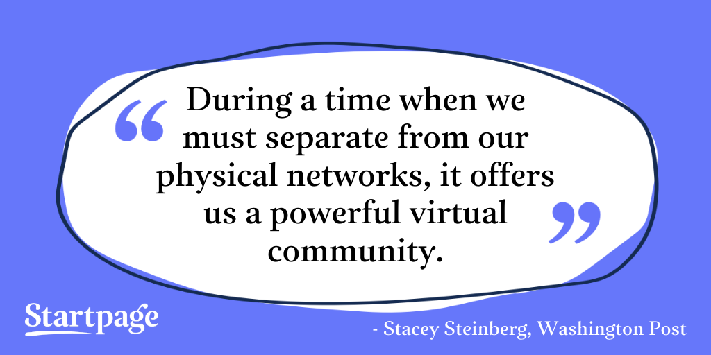 Stacey Steinberg wrote for the Washington Post, “But social media also has power. It has the power to connect us. It has the power to inform us. During a time when we must separate from our physical networks, it offers us a powerful virtual community. Our kids could benefit from online connectivity right now as well.” (https://www.washingtonpost.com/lifestyle/2020/04/06/this-may-be-time-harness-power-social-media-family/)