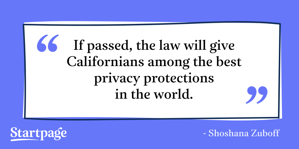 “If passed, the law will give Californians among the best privacy protections in the world, and it includes provisions for its continuous strengthening against the relentless assaults of tech lobbyists.” (https://www.caprivacy.org/award-winning-author-and-privacy-expert-shoshana-zuboff-joins-advisory-board-of-californians-for-consumer-privacy-in-support-of-prop-24/)